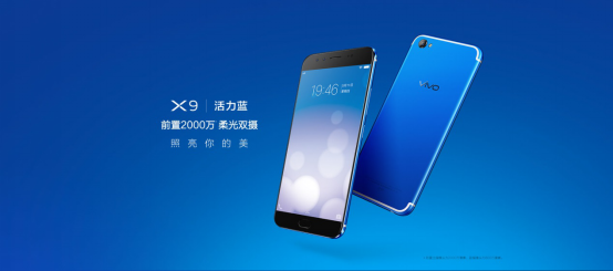 Vivo X9 采用象征激情和坚韧的活力蓝为主色调,白色的U形天线和蓝色巧妙配合。除了配色,Vivo