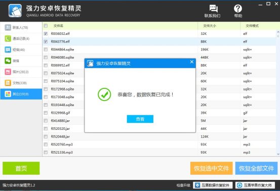 第四步:扫描完成之后,在界面左侧找到“其他”一栏点击,旁边出现有文件信息,在其中找到与聊天记录有关的文件点击,右侧出现有具体的文件信息,确认好需要的聊天记录文件之后点击“恢复选中文件”按钮,软件就开始对选中的文件进行恢复了。