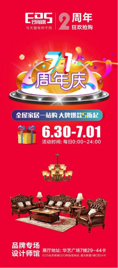 EDS会员商城就是凭借着海量优质商品、全国线下办事网点和各类技术支持系统等这些优势,一次又一次的创造着泛家居行业的奇迹。而今次的EDS周年庆活动恰逢全国年中采购节后,相信必定会比以往更精彩,活动内容更加丰富。