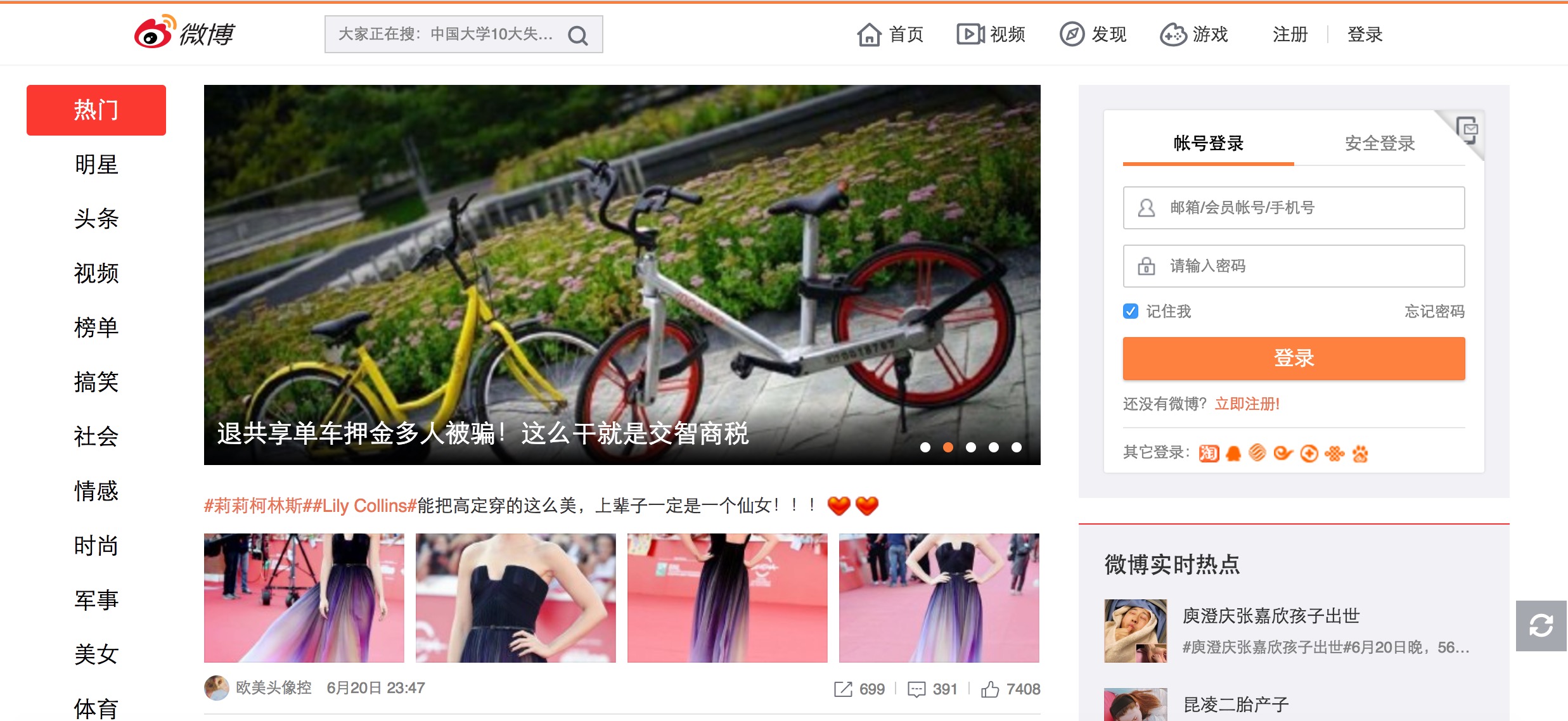 之所以微博股价暴涨,关键原因有且只有一个,那就是:内容化。这次“视听节目关停风波”也与这一战略息息相关,因为微博要引入更多内容,视听内容自然不成或缺。现在微博的内容战略还在继续推进,这几天打开微博网页版,还以为点错了——因为页面跟今日头条网页版太像,不信看图: