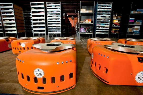 2012年,亚马逊以7.75亿美元收购了仓储机器人公司Kiva Systems,并用其机器人提升仓储物流系统。据悉,亚马逊在其仓储中心共投放了三万台Kiva机器人。这些机器人高 16 英寸,重约 145 公斤,移动速度可达 5 英里每小时(约2.2米/s),最多可承载 317 公斤的货物,准确率达到99.99%。