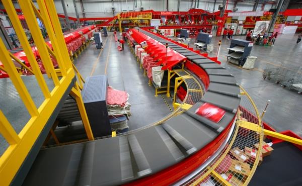 接下来,就轮到拣选机器人出场了。京东的delta拣选机器人配有先进的3D视觉系统,可以从周转箱中识别出客户需要货物,并通过工作端的吸盘把货物转移到订单周转箱中,拣选完成后,通过输送线将订单周转箱传输至打包区,打包员将商品进行打包后,一个个包裹就可以发往全国各地了。