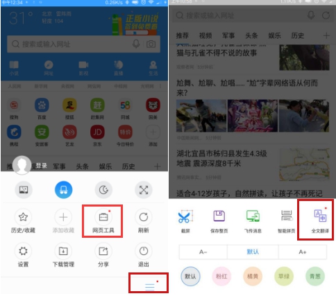 全文翻译功能入口在搜狗手机浏览器底端工具栏的网页工具中,点击全文翻译即可对英文页面进行完整翻译。