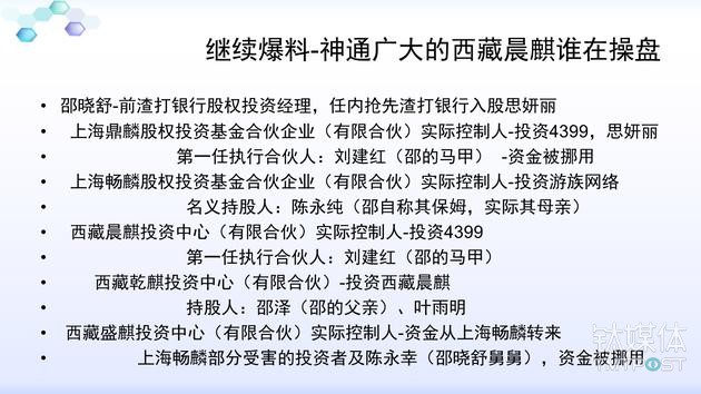 4、西藏晨麒系邵晓舒控制的企业,邵晓舒以叶雨明为马甲参与4399、游族网络的办理对其经营产生重大影响,这样的交易怎么不是关联交易,这样的关联交易怎么能不审查西藏晨麒如何取得的四三九九24%的股权,7.2亿的注册资金是否是真实的入资,30亿的估值从和而来,这难道不是赤裸裸的利益输送;