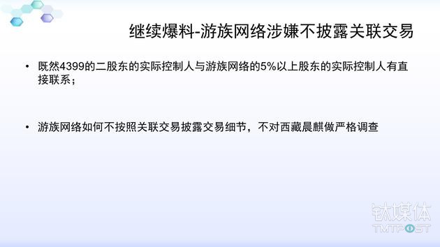鼎麟方面还称,蔡文胜曾在2013年持有4399的股权从47%直接降到1.36%,正常来讲股东的这种变动是要在公开文件中披露出来的,但是并没有披露。鼎麟方面称,蔡文胜股权的减少,很有可能就是当时他将鼎麟投给游族的9600万元和股权转给了邵晓舒。