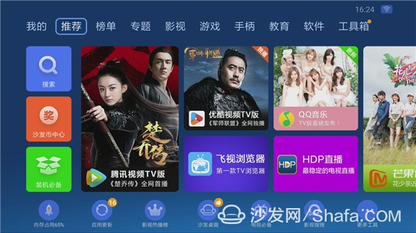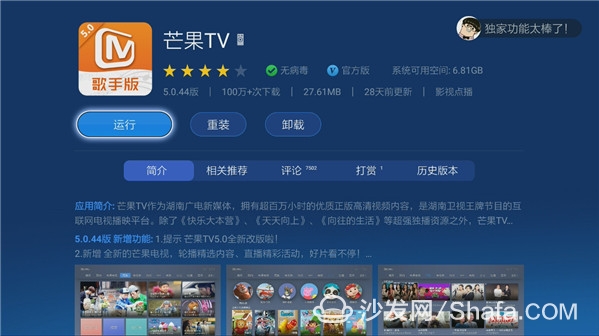 安置完成之后,你同样可以通过沙发管家客户端随意安置一些视频软件,好比爱奇艺,芒果TV版,优酷视频TV版等