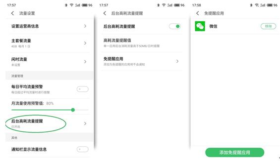 6 体验版固件,又新增了贴心的高耗流量提醒功能。在手机管家—流量办理—设置—后台高耗流量提醒中开启该功能,当单一应用后台消耗流量高于设定的值时,系统就会进行及时提醒。而如果某些应用被你赋予了“特权”,不受该功能的限制,则可以设置为免流量提醒应用。