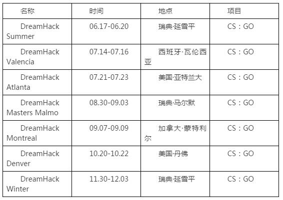当然DreamHack除了一年两度的电竞游戏节外,每年还有数量众多的分站赛事遍布全球,让世界各地的电竞喜好者们在家门口就能享受到电子竞技带来的乐趣。火猫直播作为DreamHack系列CS:GO赛事的国内独家转播方,将全程独播下半年所有DreamHack分站赛事,以下是本年剩余DH分站赛列表: