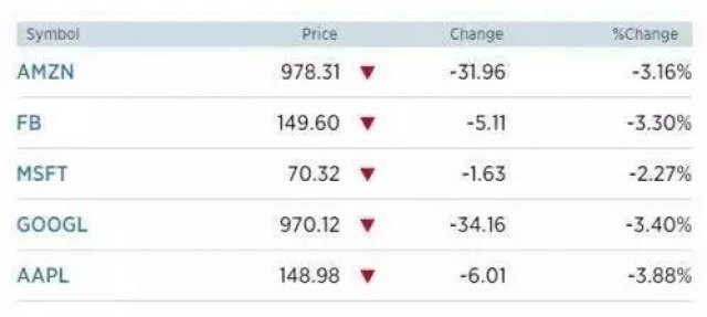 3、美国五大科技巨头股票下跌 亏损近1000亿美元