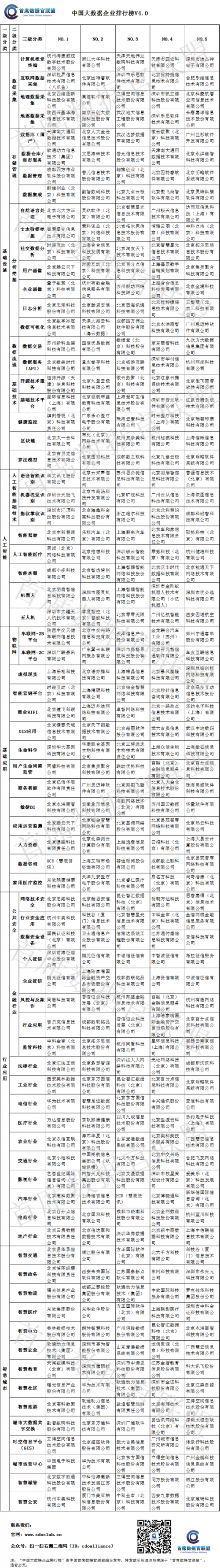 V4.0》共涉及 76 个细分领域及 10 个周边办事,近 400 家企业入围。比V3. 0 增加了 35 个细分领域, 175 家企业。本次评选仍然沿用《中国大数据企业排行榜