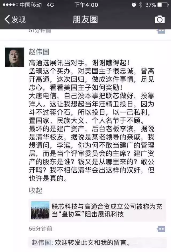 如果引入高通有问题,那么为什么紫光展讯引入英特尔、华芯通半导体成立之时,无人质疑?