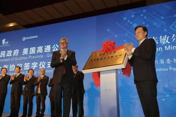 (高通CEO莫伦科夫与贵州省委书记陈敏尔为贵州华芯通半导体公司揭牌)