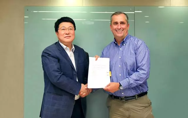 (紫光集团董事长赵伟国与英特尔全球CEO科再奇签署合作协议)