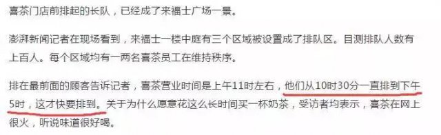 “喜茶的投资很大,第一天一共聘请了300多个人假排队”。