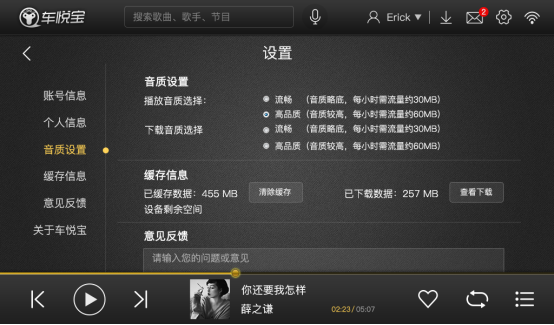 高品质音效可如春雨绵绵,可如夏日蝉鸣,聆听真实的自然之音。车悦宝3.1版本全新加入了音质设置功能,畅听更加流畅,流量更省心。