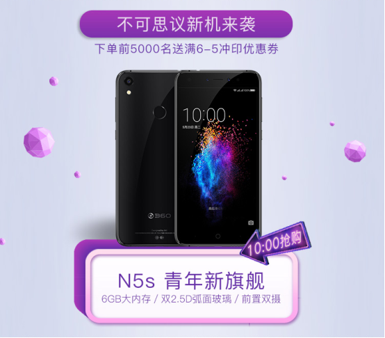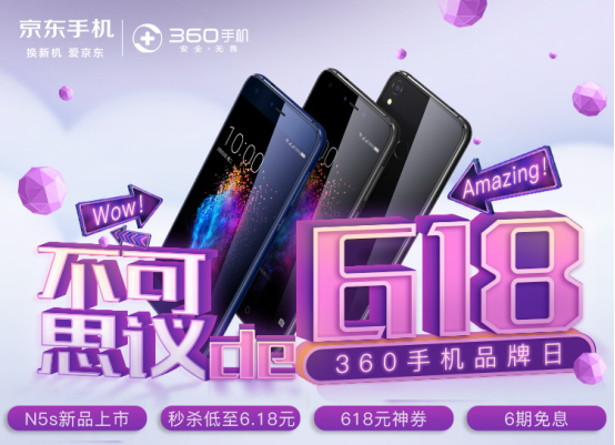 6月7日,360手机将联合京东共同开启品牌日活动,届时不但有N5s新品现货发售,还将有N5系列全线直降、6期白条分期免息券免费领、多类满减券发放以及热门机型6.18元秒杀等,惊爆优惠赚足眼球,多重惊喜值得期待。