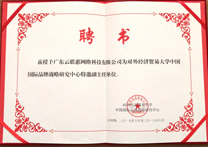 对外经济贸易大学中国品牌战略研究中心授予云联惠聘书