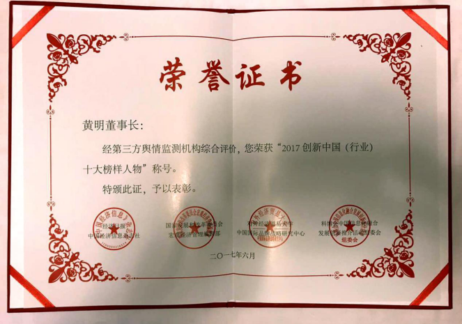 云联惠董事长黄明荣获“ 2017 创新中国(行业)十大模范人物”荣誉称号