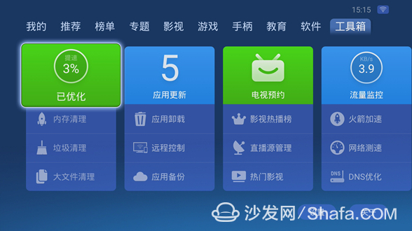 乐视超级电视在使用一段时间之后,因为是安卓系统的缘故,总会缓存一些系统垃圾,这些缓存垃圾会很大程度的影响系统的反应速度,所以需要下载第三方软件清理这些缓存,我们可以安置一个沙发管家,沙发管家工具箱有很多清理工具,可以深度清理垃圾,让超级电视连结流畅运行。