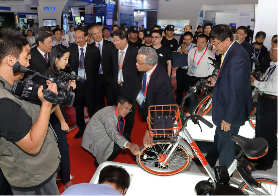 本届大会上,摩拜单车除了展出最新一代内部代号“风轻扬”的智能共享单车外,还带来了多款“技术验证单车”,综合运用超轻量、碳纤维、钛合金、十八级変速等尖端科技,代表着共享单车行业的最高设计和技术水平,受到全国人大财经委员会主任、原交通运输部部长李盛霖,中国科协党组书记、常务副主席尚勇,交通运输部副部长戴东昌等众多嘉宾的关注,被赞充满“科技范儿”。