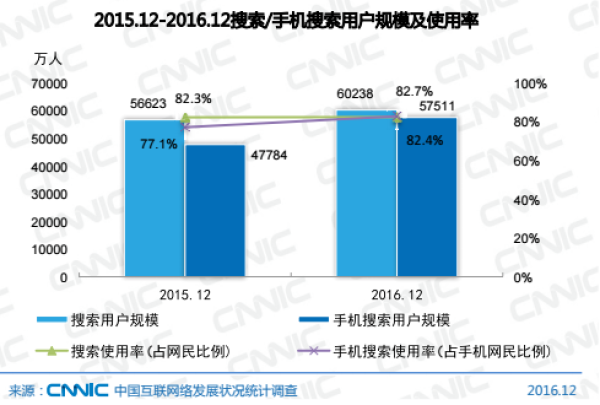 CNNIC在 2016 年 12 月底发布的统计数据显示,国内搜索用户规模为6. 02 亿人,其中手机搜索用户规模为5. 75 亿,手机搜索用户在整体搜索用户中所占比例高达95%。从增长率上能够更清晰地看到这一移动化的趋势,整体搜索用户年增长率只有6.4%,而手机搜索用户的增幅则高达20.4%。换句话说,所有的搜索引擎公司几乎是站在同一起跑线上面对一个全新的市场。