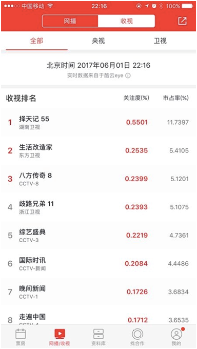 6 月2日晚,,经历了45天播出期的《择天记》正式收官,大结局当晚猫眼专业版显示该剧收视排名再度跃居第一,关注度0.5501%、市占率11.7397%等收视数据再创新高。