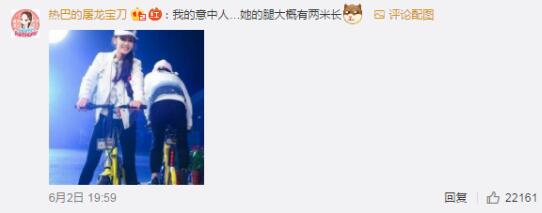 迪丽热巴在节目中体现,本身很久没骑单车了,,但从wuil热巴小仙女的满脸的笑容来看,也是十二分的愿意加入到一鹿骑行的行列中,许多迷哥迷弟评释,“我的意中人,她有腿有两米长”,“你负责骑,我们一直在身后掩护你和小黄车,小傻瓜”。