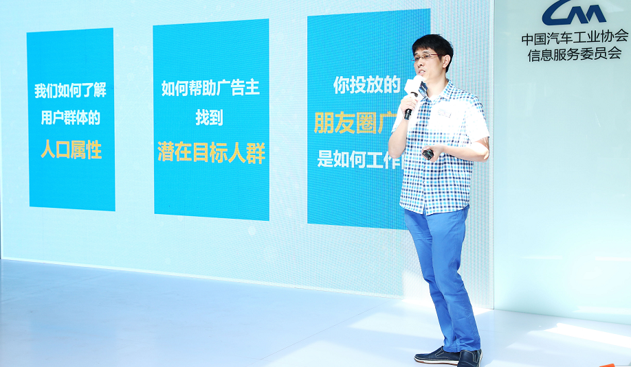 同时,腾讯拥有强大的数据智能分析技术,来让数据发挥更大的能效。在研讨会上,,腾讯营销学院高级讲师、腾讯社交广告数据科学家靳志辉向宾客介绍了腾讯在智能数据分析上的“黑科技”。例如对汽车企业来说十分重要的用户年龄和婚恋状况这两个数据,腾讯能够按照用户的社交习惯、人际关系,互联网行为等多重优化,并结合深度学习及图片分析技术,大幅提升数据的真实度。别的还有基于向量分析和微信社交圈挖掘的lookalike人群扩展,以及信息投放中的层层扩散波纹式传播模型等等。