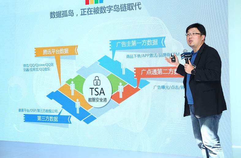 在当天的研讨会上,腾讯营销学院资深专家、腾讯社交广告副总经理张敏毅提出,通过腾讯的连接,数据孤岛可以酿成“大陆”,或是“岛链”。