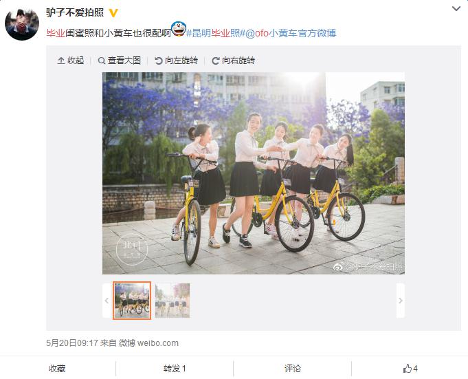 而对于某些脑洞奇大的人来说,ofo小黄车也是拍摄创意结业照的最佳朋友。好比这位“袁路路爱蹦蹦跳”的微博用户晒出了本身拍的创意结业照,照片里面小黄车躺在地上,还有一票长腿妹子也躺在地上,说这是要让小黄车歇一会儿。或许走向社会之后每个人终将过上安分守纪的生活,但只要有梦想在,未来还是充满了色彩。而在追逐梦想的路上,ofo小黄车将与所有人同行。