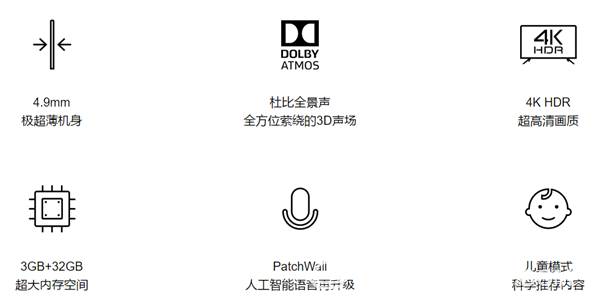 小米电视 4 是小米目前最轻薄的电视,厚度仅为4.9mm,比iPhone7 还要薄29%,屏幕采用无边框设计,像是一整块玻璃,背部采用高阶曲面造型,美到令人窒息。