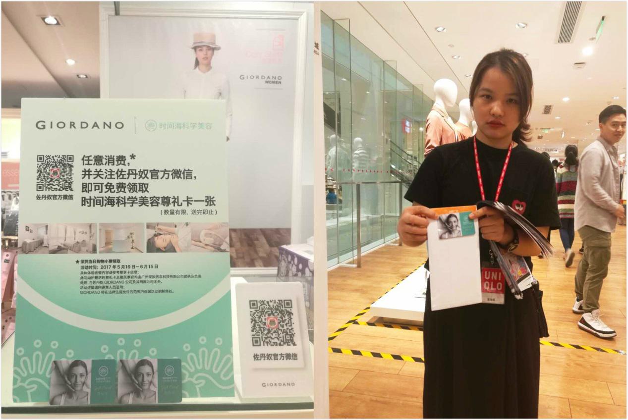 近日,凡在优衣库、佐丹奴指定门店消费必然金额的用户,均可获赠时间海科学美容斑斓尊享卡一份,凭卡可免费预约享受深度皮肤清洁项目小气泡或深度补水项目水密码等美肤办事一次。此次合作,也是优衣库、佐丹奴门店首次与美容品牌的一次跨界尝试。