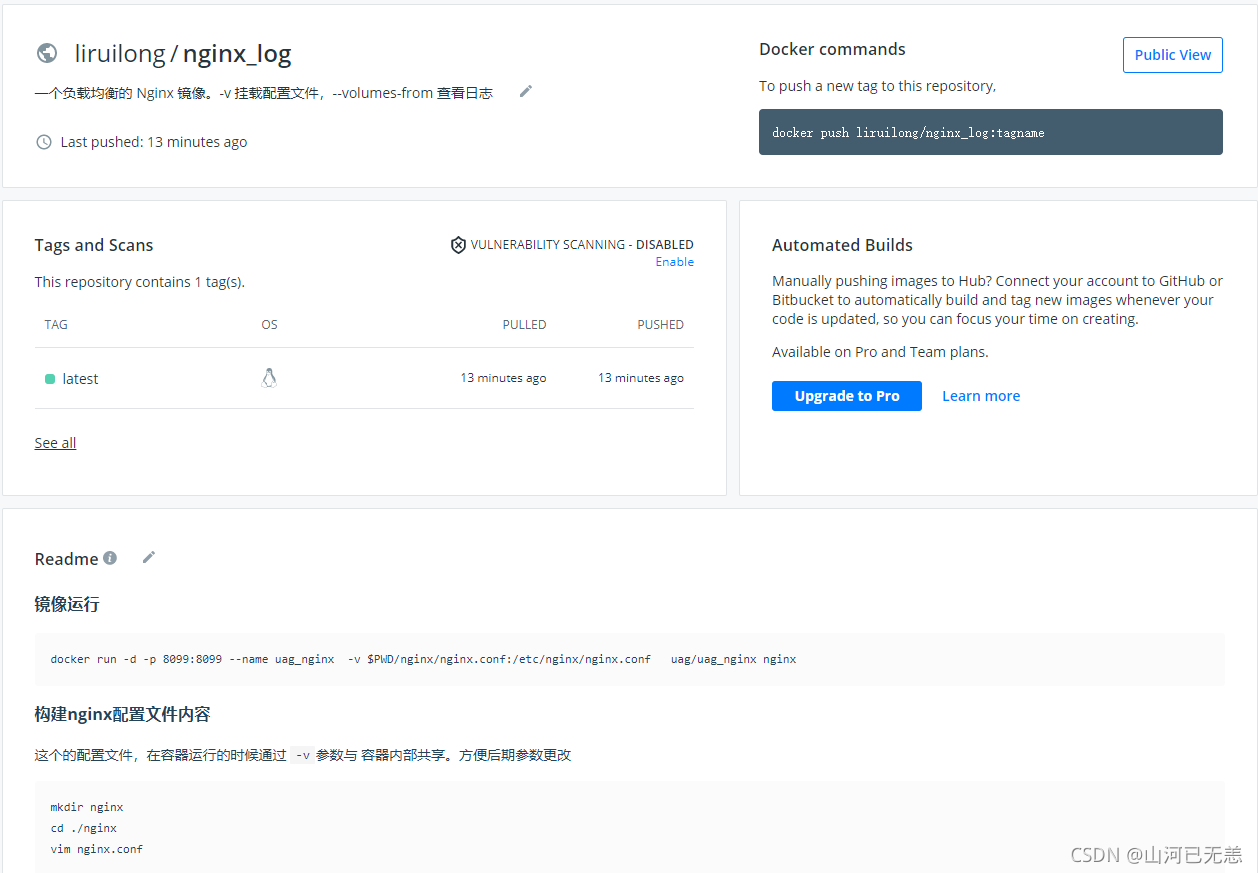 └─$ docker push liruilong/nginx_log:tagname # 拉去镜像