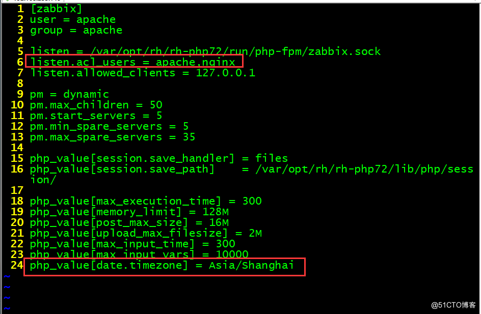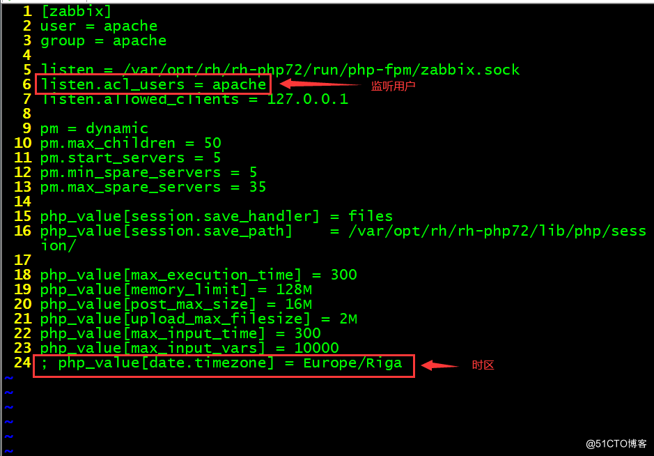 [root@localhost rh-php72] vim php-fpm.d/zabbix.conf