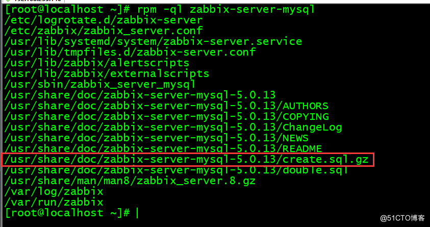 [root@localhost ~] zcat /usr/share/doc/zabbix-server-mysql-5.0.13/create.sql.gz > zabbix.sql