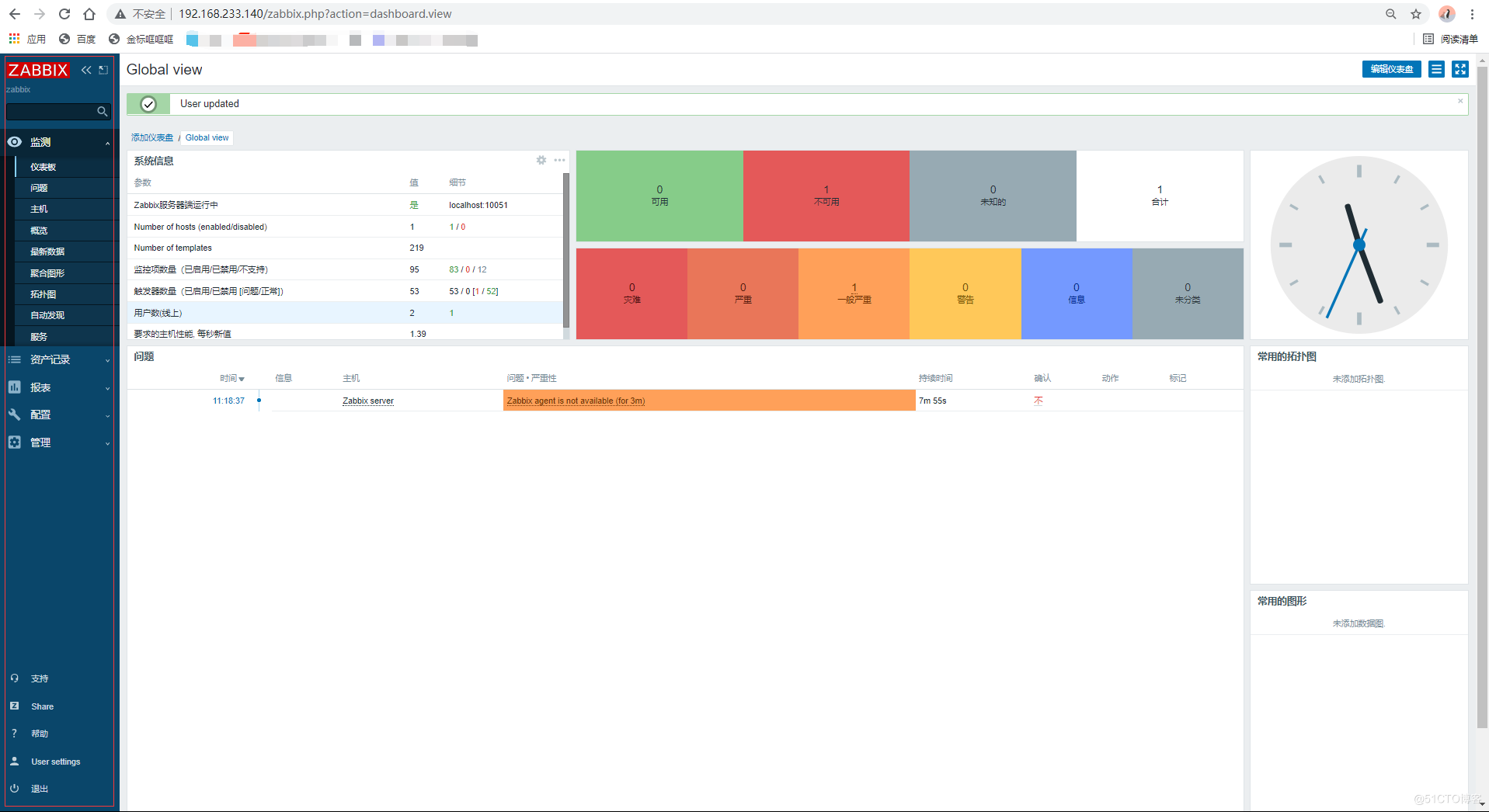 这里就可以看到,恭喜你,您已经成功的安装好了zabbix服务