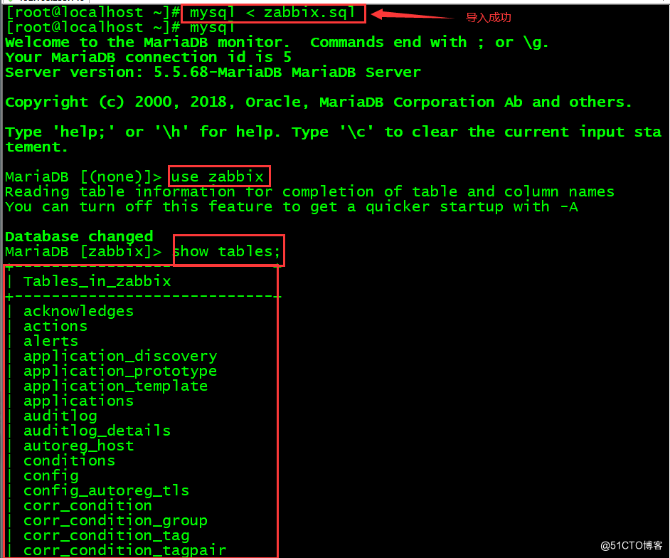 [root@localhost ~] mysql < zabbix.sql #然后再次进行数据的导入