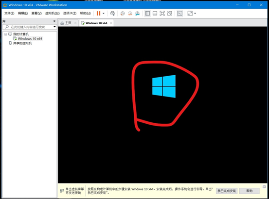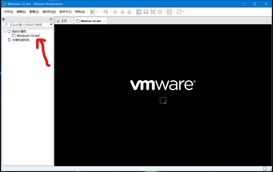 然后开启虚拟机,因为前面选择的是UEFI模式,所以这里开启虚拟机的时候会有30秒左右黑屏时间,等着就行,不需要操作。