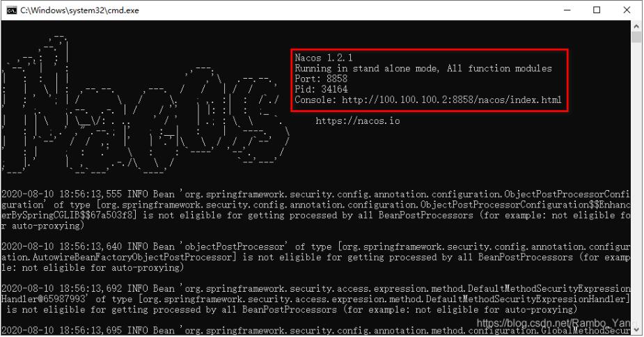 在常规的项目开发过程中,特别是生产环境的部署,都会尽量避免使用敏感的端口。在本次测试过程中,将 Nacos-server-1.2.1 startup.bat 启动的服务器默认端口 8848 修改为 8858,Nacos 可以正常访问和登录。