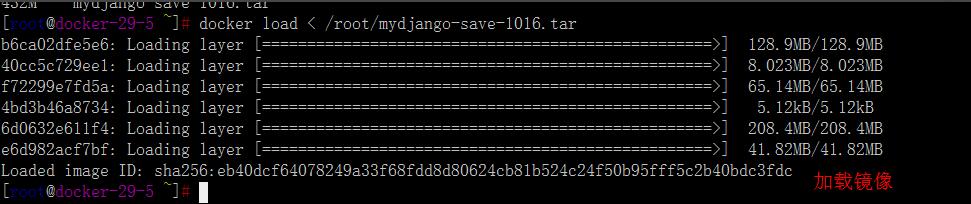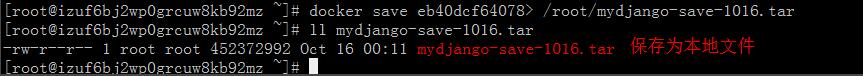 2、docker save eb40dcf64078> /root/mydjango-save-1016.tar 将镜像保存为本地文件,其中eb40dcf64078为image id