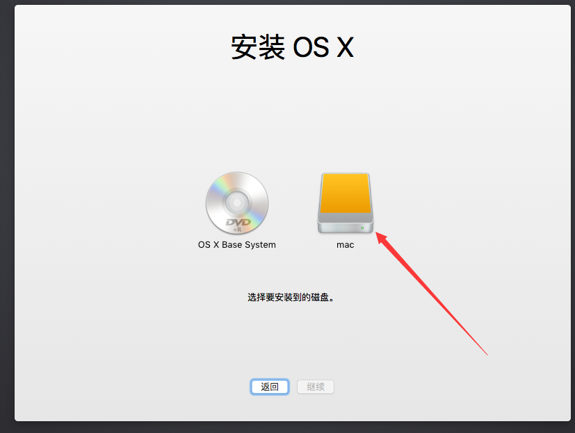 同意协议,选择你要将Mac OS安装到的磁盘,也就是刚刚我们格式化掉的磁盘。