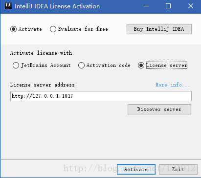 然后我们就可以在idea的激活页面就可以直接填写我们创建的这个服务。