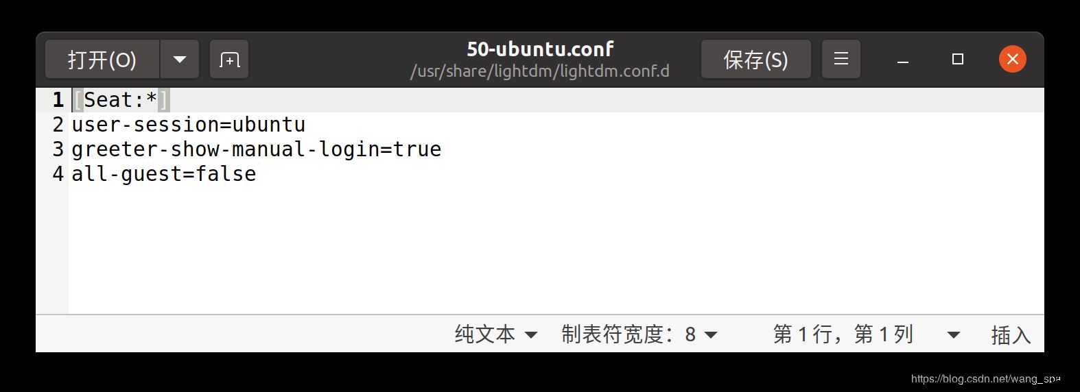 在终端输入命令:sudo gedit /usr/share/lightdm/lightdm.conf.d/50-ubuntu.conf