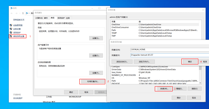 “变量名”栏填写:CATALINA_HOME (必须大写)