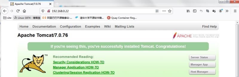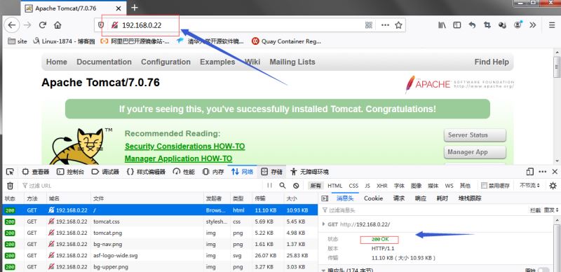 提示:可以看到我们访问192.168.0.22时,浏览器返回了tomcat中localhost提供的主页;