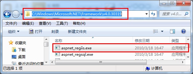 ①找到.NET 4.0框架下aspnet_regiis所在目录,在C盘根目录中搜索aspnet_regiis,找到4.0框架下aspnet_regiis的目录位置,本人本本目录为"C:\Windows\Microsoft.NET\Framework\v4.0.30319".