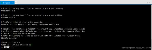 3. master 作为 ntp 服务器,修改 ntp 配置文件。(master 上执行)