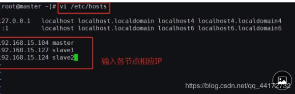 2. hosts文件配置 (三台机器) 如下图输入各节点的ip