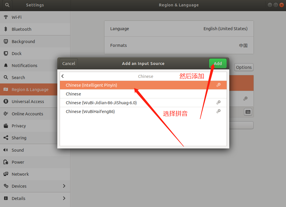 ubuntu 在最新的版本中已经可以不用用户自己单独去下载中文输入法使用了,本次使用为 ubuntu18.04LTS版本(登陆是界面选择的是ubuntu on wayland),设置方式非常简单