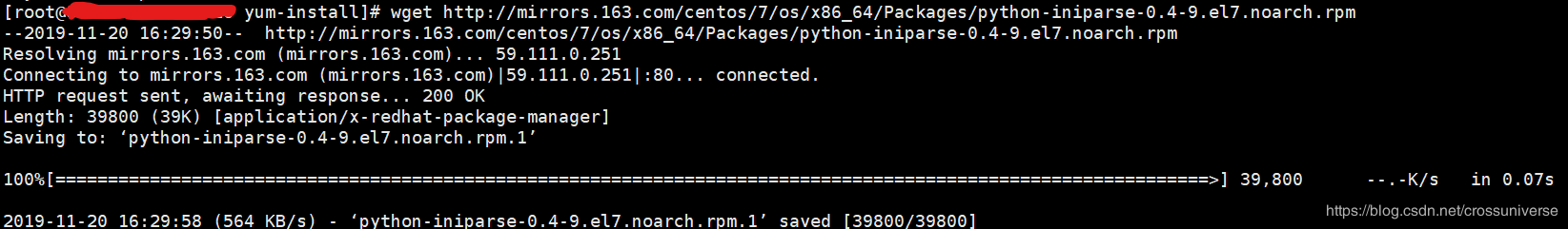 wget http://mirrors.163.com/centos/7/os/x86_64/Packages/python-iniparse-0.4-9.el7.noarch.rpm